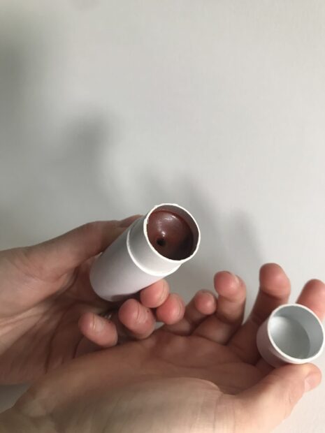Brown Autumn Kr. 85 Order by email Brown Autumn: rosa rugosa / rynket rose almond oil, beeswax, vitamin E, raw cocoa butter,shea butter, approved colour pigment (Titanium Dioxide, Mica, Iron Oxide, Tin Oxide) 18mm.